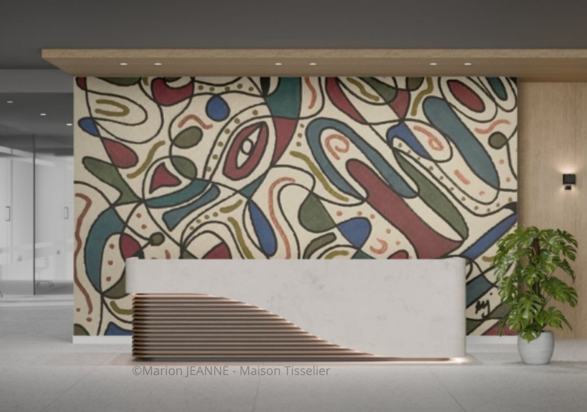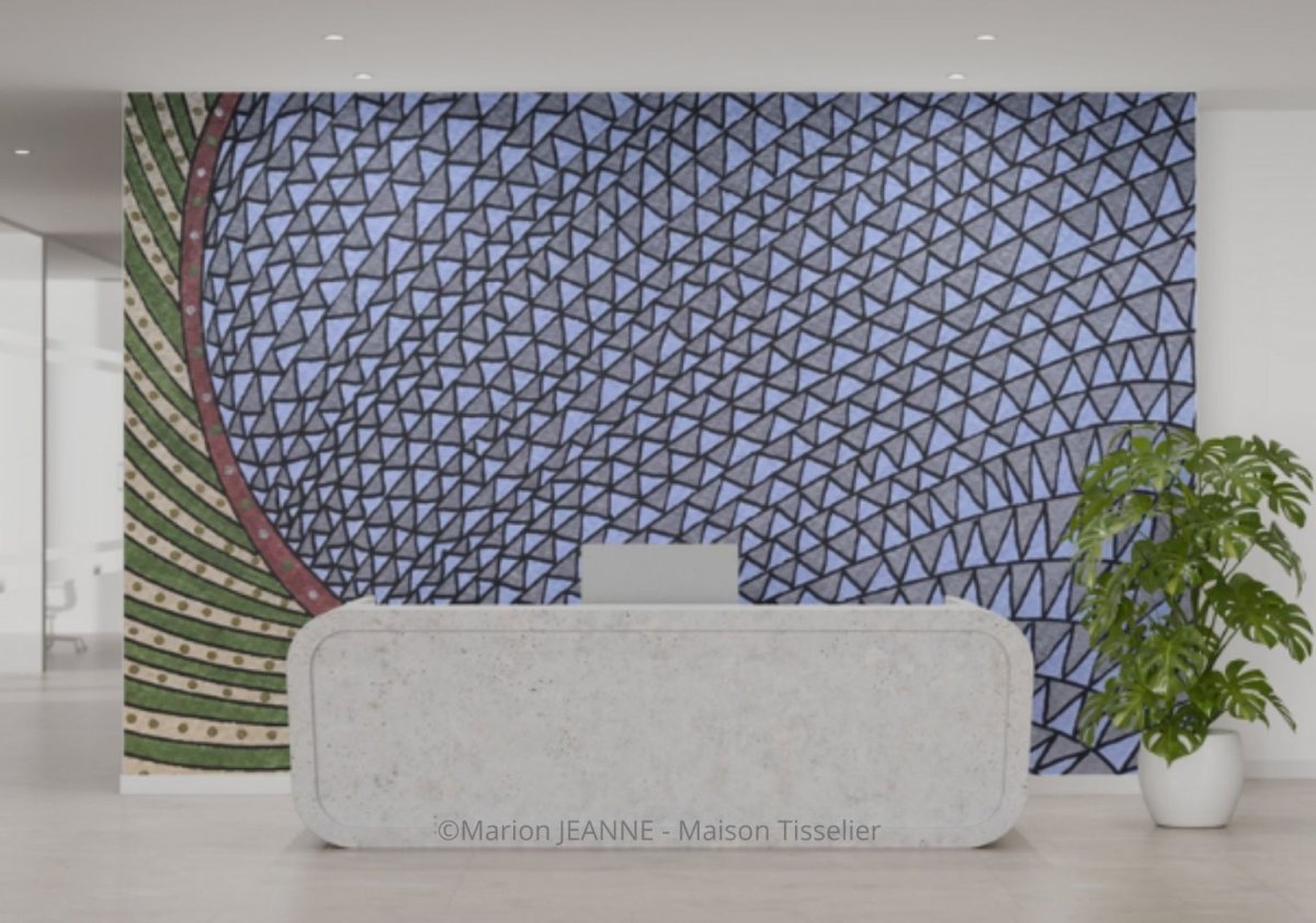Dans ce projet, ©Marion JEANNE - Le vent dans les partitions - nom de la création, a été imprimée sur du papier mural. Sa dimension a permis de révéler toute l'envergure de ce lieu et la bienveillance de l'accueil